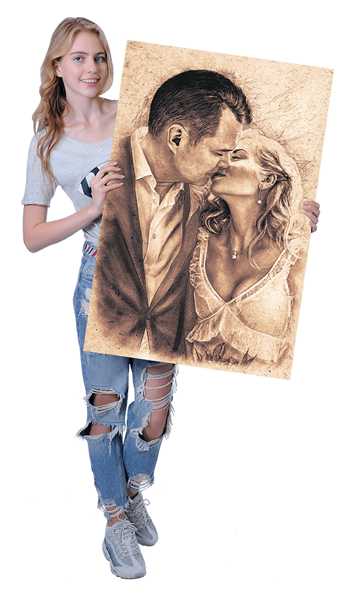 Прочный холст и оригинальные пигментные чернила гарантируют долговечность портрета, сохраняя яркость и насыщенность цветов.